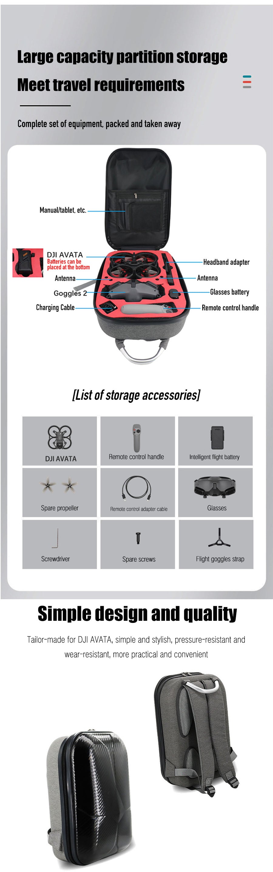 1. Simple design and quality: This Storage bag Tailor-made for DJI AVATA, simple and stylish, pressure-resistant and wear-resistant, more practical and convenient