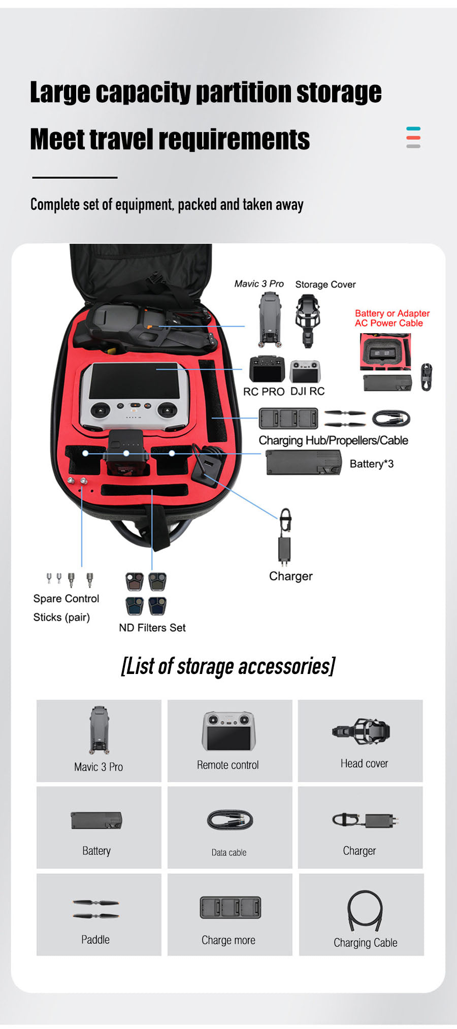 2. Anti-pressure, anti-fall and shock-absorbing: This DJI Mavic3 Pro backpack Strong pressure resistance, anti-fall and shock-absorbing, resist the squeeze in daily traffic, fully protect your drone