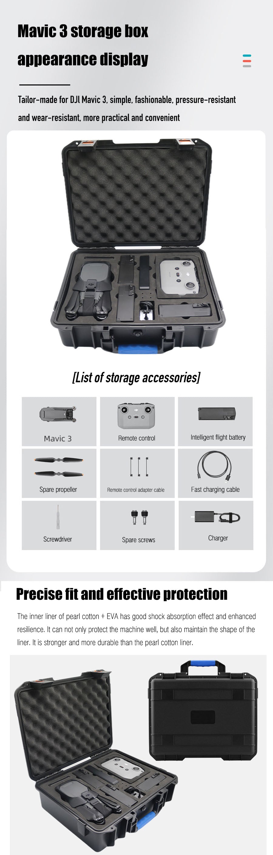 3. Anti-pressure, anti-fall and shock-absorbing: This DJI Mavic 3 storage bag Strong pressure resistance, anti-fall and shock-absorbing, resist the squeeze in daily traffic, fully protect your equipment