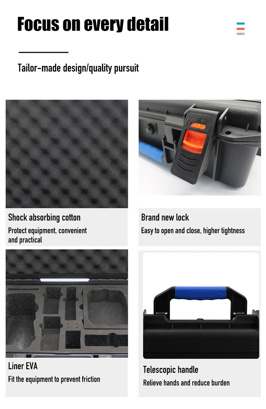Function: waterproof, shock-resistant, wear-resistant, stowable, explosion-proof case